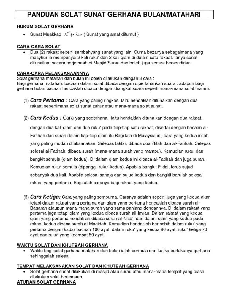 Panduan ringkas solat sunat khusuf (gerhana bulan) solat gerhana ini disunatkan untuk ditunaikan secara berjemaah dengan diseru sebelum .